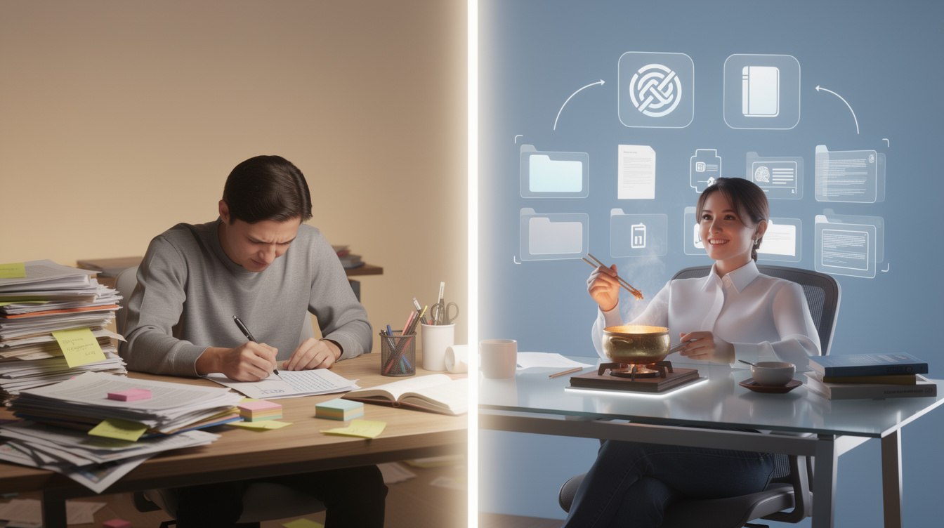 晚上七點的辦公室,燈還亮著。很多人在趕報表、整理會議記錄,這些重複性工作佔據了台灣上班族每天至少 3 小時。AI 不是來搶飯碗,是來幫你準時下班的。當別人還在手動複製貼上,懂得運用工具的人已經準時打卡去吃火鍋。